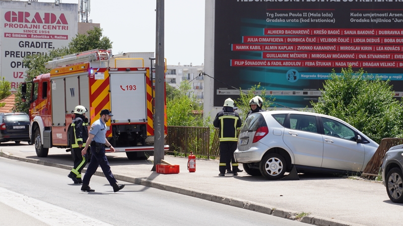 Sedmorica vatrogasaca s dva interventna vozila sudjelovala su u spašavanju vozačice malog Mercedesa njemačkih registracijskih oznaka, koja je pod još nepoznatim okolnostima izletjela s kolnika i zabila se u ogradu u Ulici Stjepana Radića. Vozačica je ostala zarobljena u vozilu koje je visilo iznad tamošnjih kuća, ali je zahvaljujući brzoj i odlučnoj intervenciji vatrogasaca spašena. Vozačica je zbog zadobivenih ozljeda zbrinuta u šibenskoj bolnici.