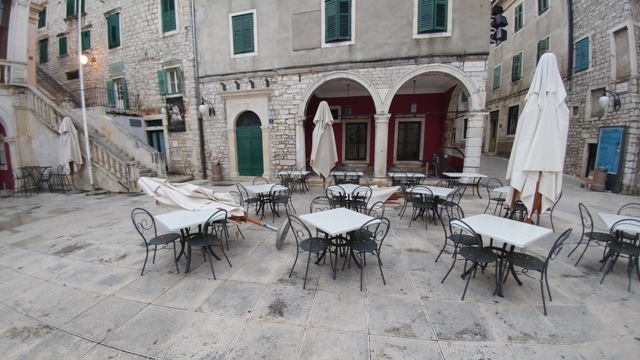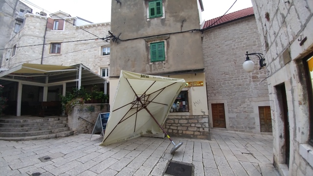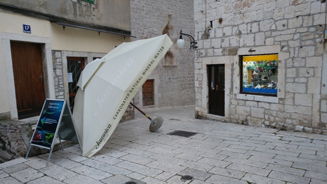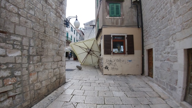 Iako sinoćnje nevrijeme nije uzrokovalo veće probleme, kako su nam ranije jutros rekli u Županijskom centru 112, nereda je bilo po gradskim ulicama u Šibeniku. Kako šibenska povijesna jezgre ne obiluje zelenilom, platili su suncobrani ugostiteljskih objekata kojih na spomenutoj lokaciji ne manjka.