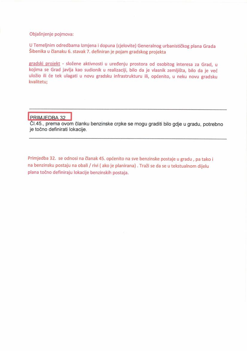 te da je potrebno točno definirati gdje se mogu graditi benzinske crpke jer se prema članku 45. mogu raditi bilo gdje (u prilogu). Odgovor: Prihvaća se djelomično. Dopunit će se odredbe za njihov smještaj kako bi se osiguralo da nema negativnog utjecaja na korištenje drugih namjena. Što se nije dogodilo.