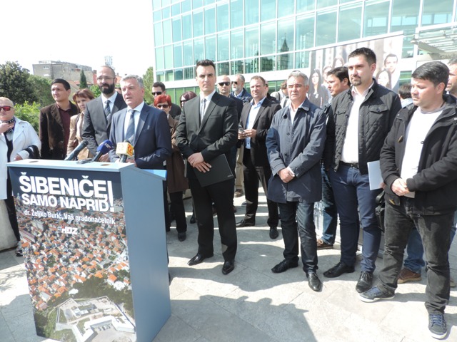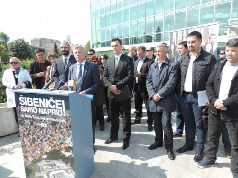 Na predstavljanju programa HDZ –a za Grad Šibenik, kao prvog dana prikupljanja potpisa na Poljani uz kandidate su bili mnogi HDZ –ovi direktori gradskih poduzeća i institucija