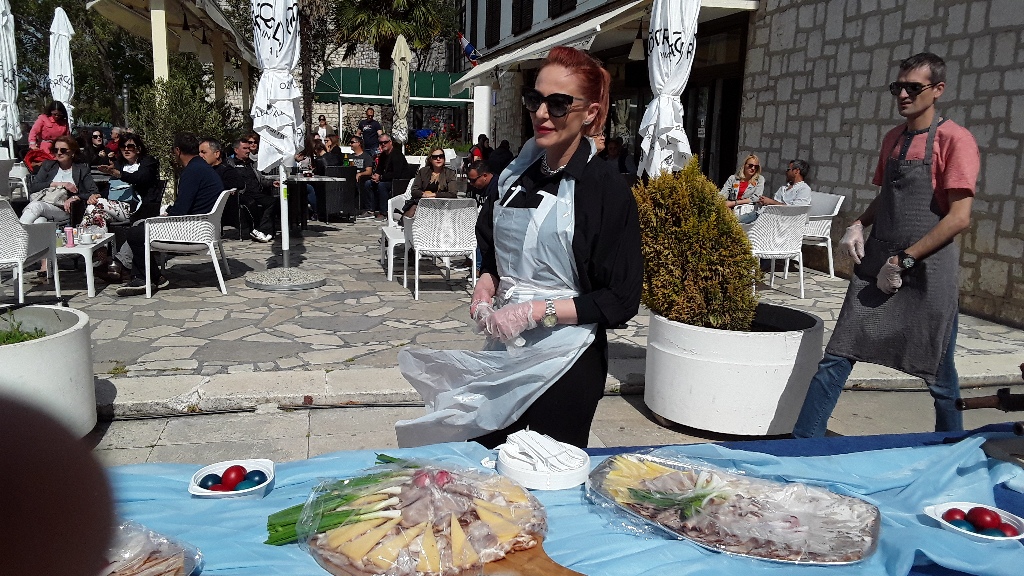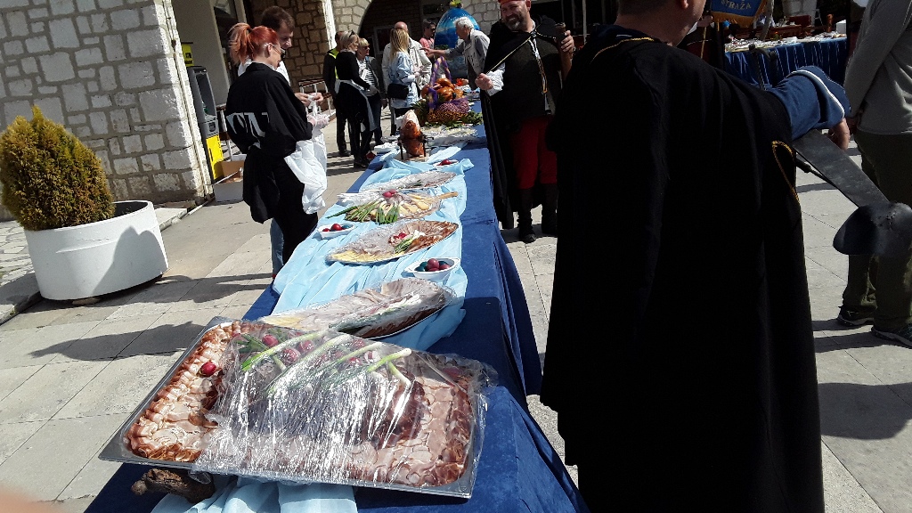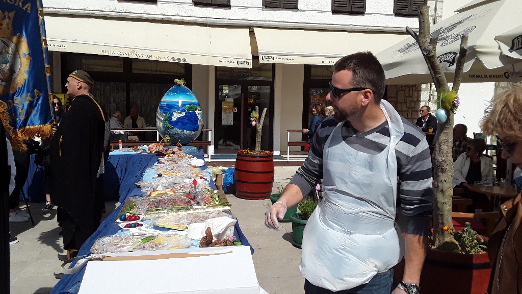 Uskrsne delicije su u najavljeno vrijeme bile složene na stolovima, ali dok nije bila gotovo fritaja i dok nije dan blagoslov nitko im nije mogao prići jer su stolove čuvali članovi Šibenska gradske straže. Kao ukras se isticalo mega jaje na kojem su bili nacrtani hrvatski motivi, a izradila ga je Maja Vukina Bogović, prva Miss Mamma.