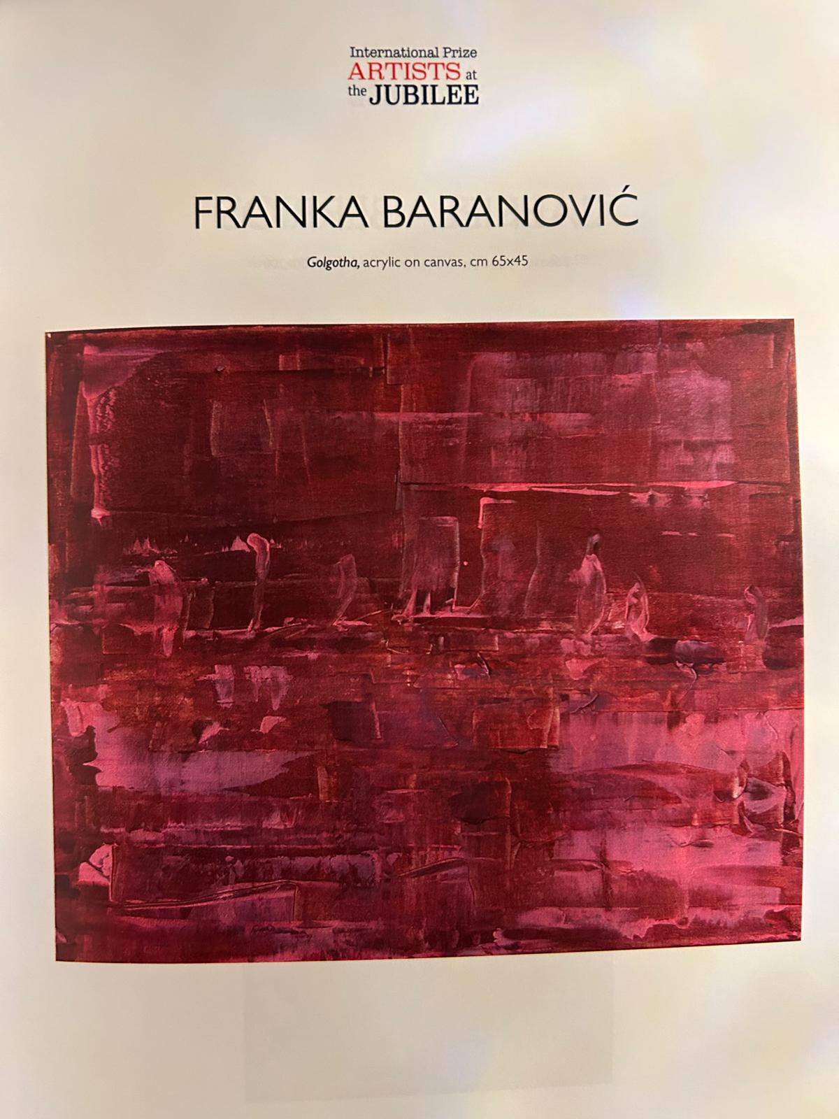 Šibenska dizajnerica i umjetnica Franka Baranović dobila je međunarodnu nagradu „Umjetnici na Jubileju” koja joj je uručena u petak, 21. prosinca u elegantnoj dvorani Rome Event Congress Centra u Rimu u prisustvu brojnih kolekcionara, novinara i ljubitelja umjetnosti. Zaslužila ju je za sliku „Golghota”, kako ona kaže, jednu malu i magičnu slika koja je promijenila njezin svijet svijet.