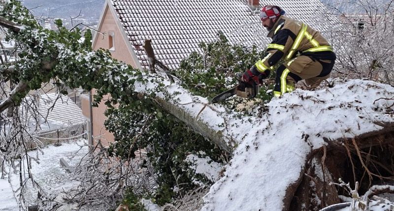 Posljedice snažnog nevremena koje je zahvatilo Knin i Kninski kraj uspješno rješavaju vatrogasci, djelatnici HEP-a, komunalne službe i cestari. Olujni vjetar i ledena kiša otkidali su grane, rušili stabla i kidali električne vodove. Dio Knina i više naselja u okolici Knina ostalo je bez struje. Ekipe HEP-a uklanjaju kvarove radeći u vrlo teškim okolnostima. U međuvremenu cestari su očistili sve prometnice i promet je normaliziran. U Kninu su uklonjene grane i stabla koje su srušili vjetar i led, a najzahtjevnije je bilo uklanjanje stabla koje se srušilo na stubište u Ujevićevoj ulici i blokiralo taj dio grada.