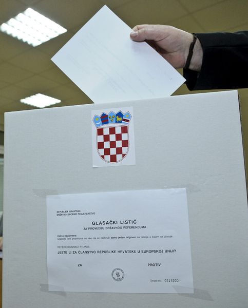 66, 57 posto birača od onih koji su glasovali je za Europsku uniju, a oko 33,43 posto ih je protiv, prema najnovijim, neslužbenim rezultatima referenduma koji obuhvaćaju 70 posto biračkih mjesta. Referendumskom izjašnjavanju odazvalo se oko 40 posto građana Hrvatske. Državni vrh već je počeo slaviti pobjedu i to odmah nakon što su prvi rezultati DIP-a pokazali da je 67 posto glasova ZA na temelju 25 posto prebrojanih listića bio jasan znak da su građani podržali ulazak Hrvatske u EU