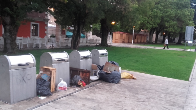 Nisu baš uvijek djelatnici Gradske čistoće krivi za ružne slike natrpanog smeća koje se mogu vidjeti pokraj kontejnera. Odgovornost snose i neodgovorni građani koji, dok su podzemni kontejneri prazni smeće ostavljaju pokraj njih. Ne samo da to nagrđuje sliku grada nego se odatle širi vonj. Teško im je podignuti poklopac i u kontejner ubaciti smeće. Ovakve prizore snimamo svakog jutra, na rivi ispred katedrale.