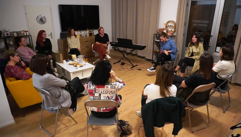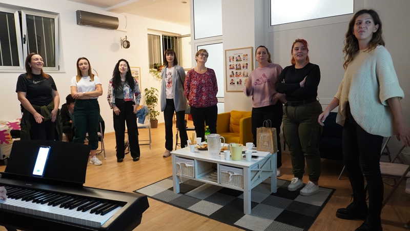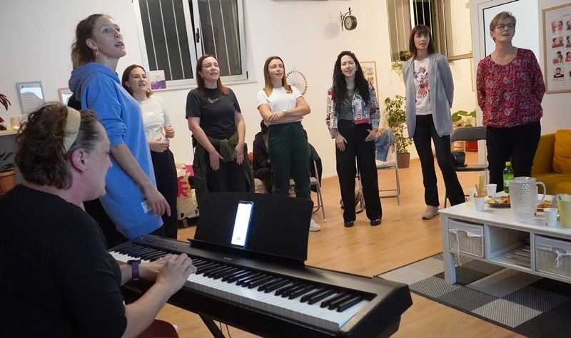 „Pjevaonica je prostor u kojem se žene druže pjevaju, zabavljaju i puštaju svoj glas, one koje imaju sluha, ali i one koje baš i nemaju. To je isto osvajanje prostora slobode. U klapama i zborovima imaju svoje aranžmane i podloženi su po glasovima, a naša je ideja da to bude slobodno pjevanje u kojom žene mogu pustiti svoj glas kako se u tom trenutku osjećaju. Moje iskustvo je da ljudi vole pjevati i družiti se uz pjesmu i kad nužno nemaj sluha. Radionica je napravljen tako da na početku imamo neke igre upoznavanja, onda kolegica Višnja Mrša Pamić, logopedica radi vježbe za glas i vodi zagrijavanje i nastavljamo pjevajući repertoar koje žene unaprijed odaberu”, ispričala nam je Martina Nevešćanin.