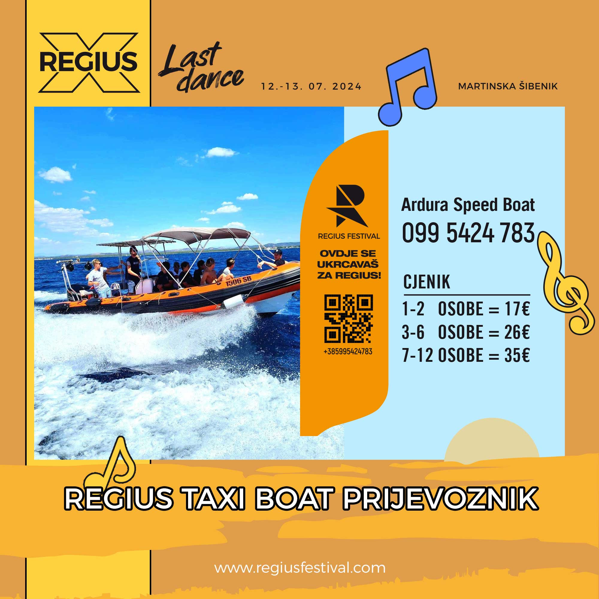 Svi oni koji žele doživjeti festival u punom svjetlu i kampirati na Regiusu, do lokacije dolaze organiziranim dnevnim gradskim linijama Šibenik - Martinska i nazad. Polasci iz Šibenika su od 10 sati pa do 19:15, a sa Martinske se u nedjelju može sve do 19:30 navečer. Nakon 19:15 na Regius i sa Regiusa dolazi se službenim organiziranim taxi brodovima, automobilima i kombijima koji voze cijelu noć na relaciji Šibenik - Martinska.