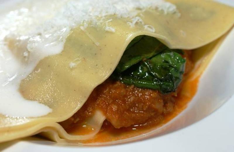 Sve sastojke izmiješamo i ručno mijesimo 20 minuta. Tijesto ostavimo u hladnjaku da se ohladi, a onda od njega oblikujemo listove lazanja. Njih treba kratko kuhati u slanoj vodi koju je dodano maslinovo ulje.