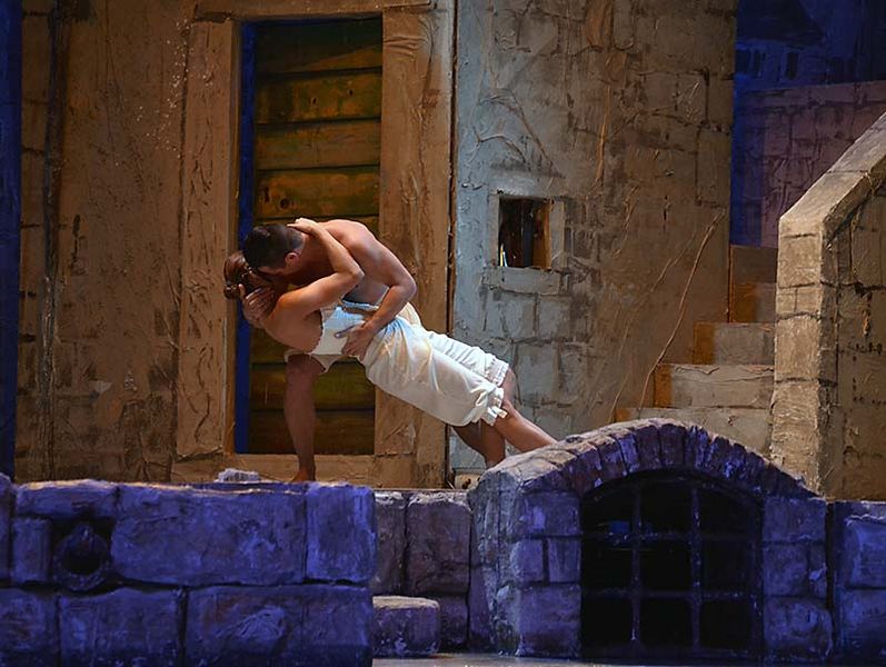 Novo šibensko kazalište otvoreno je 29. siječnja 1870. godine predstavom "Kip od mesa" Teobalda Ciconija u izvedbi talijanske putujuće kazališne družine "La drammatica compagnia Vittorio Alfieri". Vrlo značajna godina kazališnog života u Šibeniku bila je 1874. Te se godine, naime, po prvi put s pozornice čula naša riječ te se afirmirala naša drama.