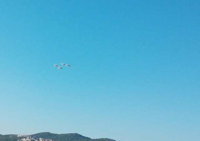 Zvuk motora i leteće akrobacije gledale su se sa svih mogućih položaja po gradu i bližoj okolici - od tvrđava sv. Mihovil i Barone, terasa i balkona kuća do rive preko najviših vrhova šetnice u kanalu sv. Ante i pramaca brodova što plove prema grada ili ga napuštaju.