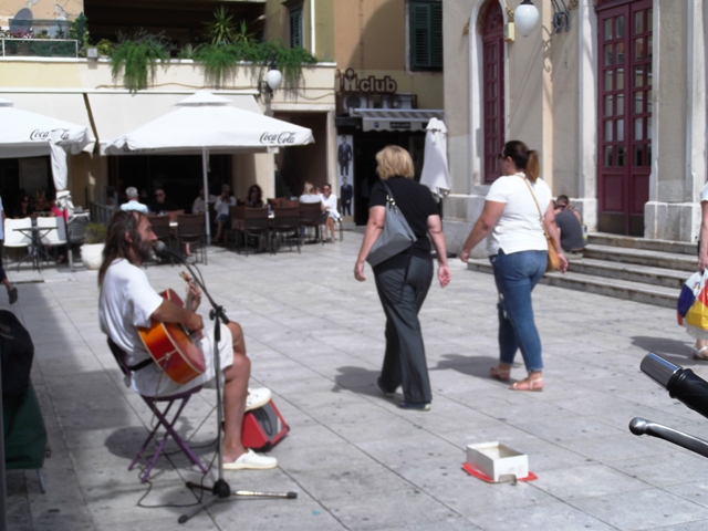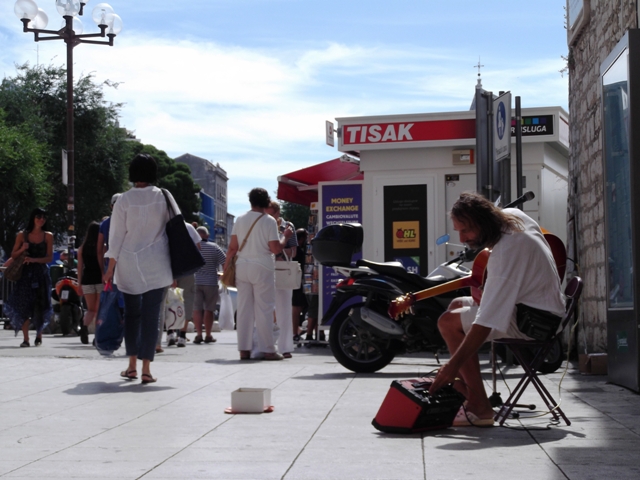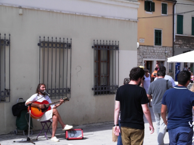Šibenčanima svaka čast. Jedini problem za uličnog svirača ovdje je sama konstrukcija grada. Ovdje prevladavaju uske uličice, vaše poznate kalete, gdje bih ja onda smetao stanovnicima koji tu žive, a to ne želim. Evo, ova lokacija koju sam uspio pronaći mi se čini sasvim dobra.