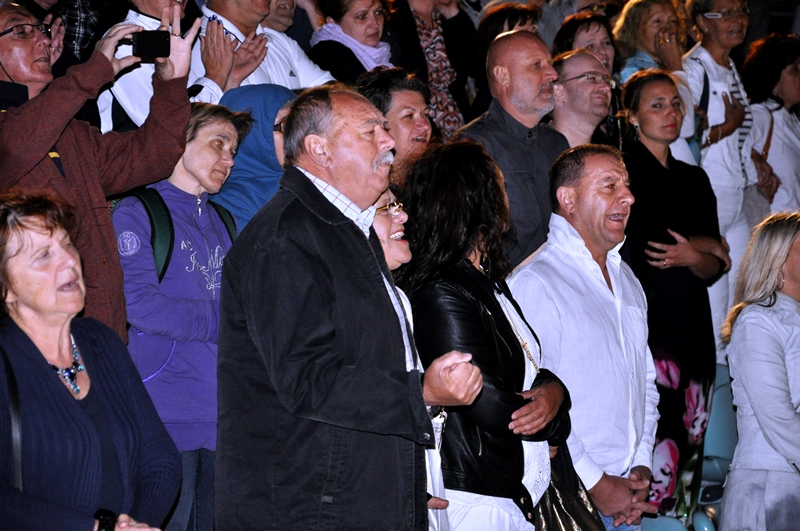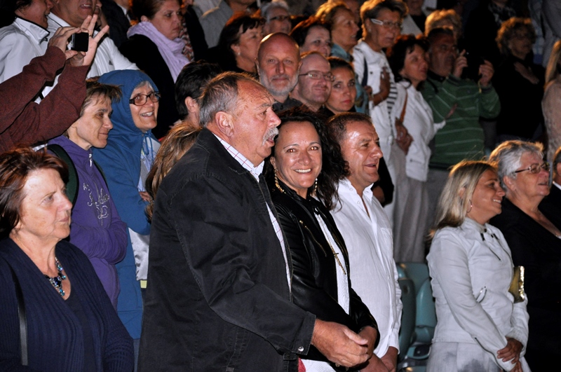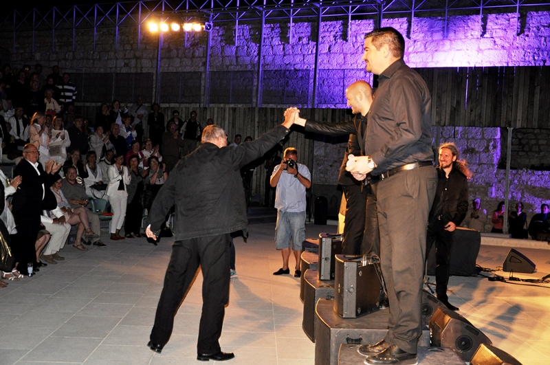 Koncert „Sjećanje na Vicu“ večeras na tvrđavi svetog Mihovila Đani Stipaničev počeo je pjesmom „Mirno teku rijeke“, a završio s „Bodulskom baladom“ koju je otpjevao sa svojim prijateljima tenorima Markom Škugorom, Markom Pecotićem-Pecom koji je na pozornicu došao u jakni kakve se ne bi postidio ni Elvis Presly i Vladimirom Garićem. Stajući na nogama s njima ju je od početka do kraja otpjevala mnogobrojna, oduševljena publika. Bio je to krešendo tog glazbenog događaja u kojemu su, bilo je očito, i jedni i drugi jednako uživali odajući počast velikom Vici Vukovu. Pratio ih je Revijski orkestar pod ravnanjem Krešimira Batinića.