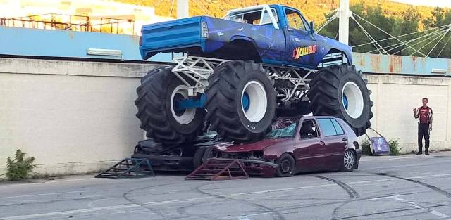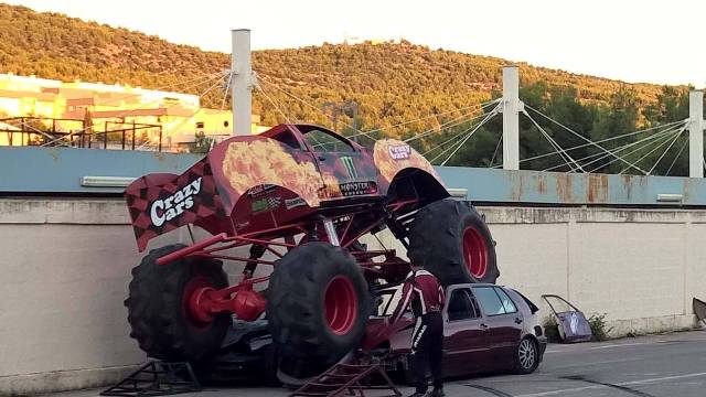 Vožnja motora na jedno kolo, bez ruku, okretanje automobila na bok ili prolazak među stolicama, a da nijedna dođe u kontakt s automobilom. Vatra i uništavanje manjeg automobila pod gumama čudovišnog stroja samo su dio programa koji su kaskaderi Crazy cars showa izveli jučer, a što će ponoviti već danas.