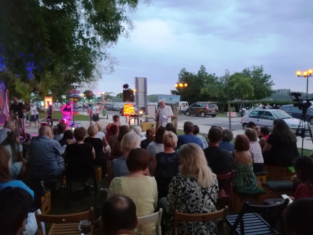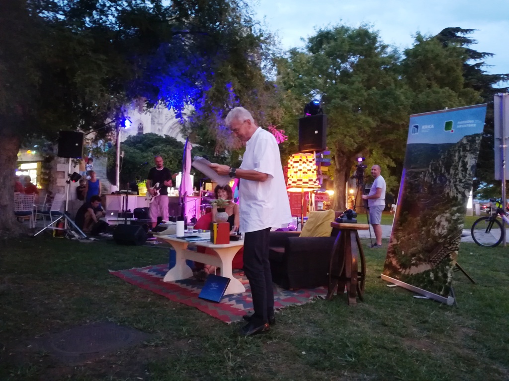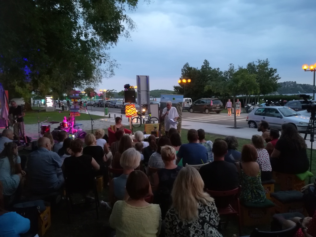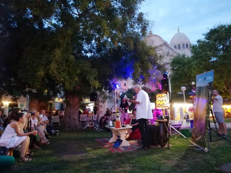 Tim je Kišević pokazao da je ne samo velik književnik već i čovjek. 'Jedino što imamo na ovom svijetu je riječ. Riječi su najveće dobro koje imamo. One nas mogu podići, one nas mogu spustiti, a ljudi se tako olako služe riječima. Riječi bi po meni trebale širiti jednu dobru energiju, svjetlo kakvo je širio Nikola Tesla', kazao je Kišević stojeći ispred velikoj broja publike koja se okupila na livadi ispred Azimuta, a pod budnim okom svetog Jakova.