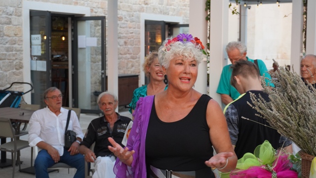 "Sretna sam što vidim ova vaša sretna lica večeras jer čovjek se osjeća da više vrijedi kada ima toliko prijatelja. Ja sam u svojim slikama izrazila svoje osjećaje i svoje raspoloženje inspirirana prirodom, ako samo dio toga osjetite gledajući ih bit će mi drago", kazala je.
