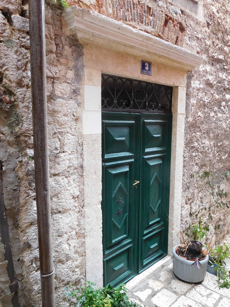 “Portal je bio dosta ošđtećen na lijevom te manje na desnom dovratniku. Ta su oštećenja izazvana korozijom ukrasne rešetke u vrhu portala. Radovi su obuhvatili čišćenje i obnovu kamenih pragova i nadvratne profilacije te restauraciju ukrasne željezne rešetke. Radove je izvela također radionica TRAVEJ d.o.o. iz Zadra. Drvene vratnice unutar ovog portala predstavljaju primjer vrsnog baroka (cca 18. st.) koji se očitava u sačuvanim okovima, ali i iznimno naglašenim profilima koji obrubljuju kasete krila. Vratnice su bile teško oštećene vlagom, osobito u donjoj zoni. Kompletnu restauraciju izveo je Atelier Kostov odnosno restauratorica Anna Kostov iz Zadra”, kaže Ivo Šprljan, voditelj tog projekta.