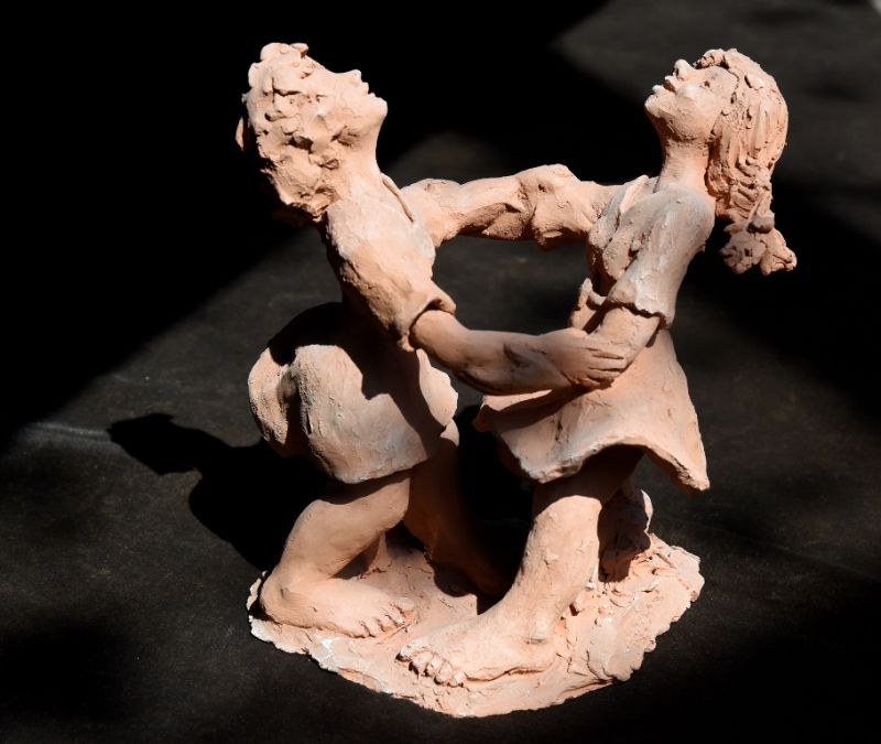 Jedini rad koji se bavi temom plesa na nefigurativni način jest keramički reljef pod nazivom „U Plesnom ritmu“ autorice Marije Višić Guine. U središtu prikaza nalaze se taktovi pretočene u ritmičke keramičke forme.