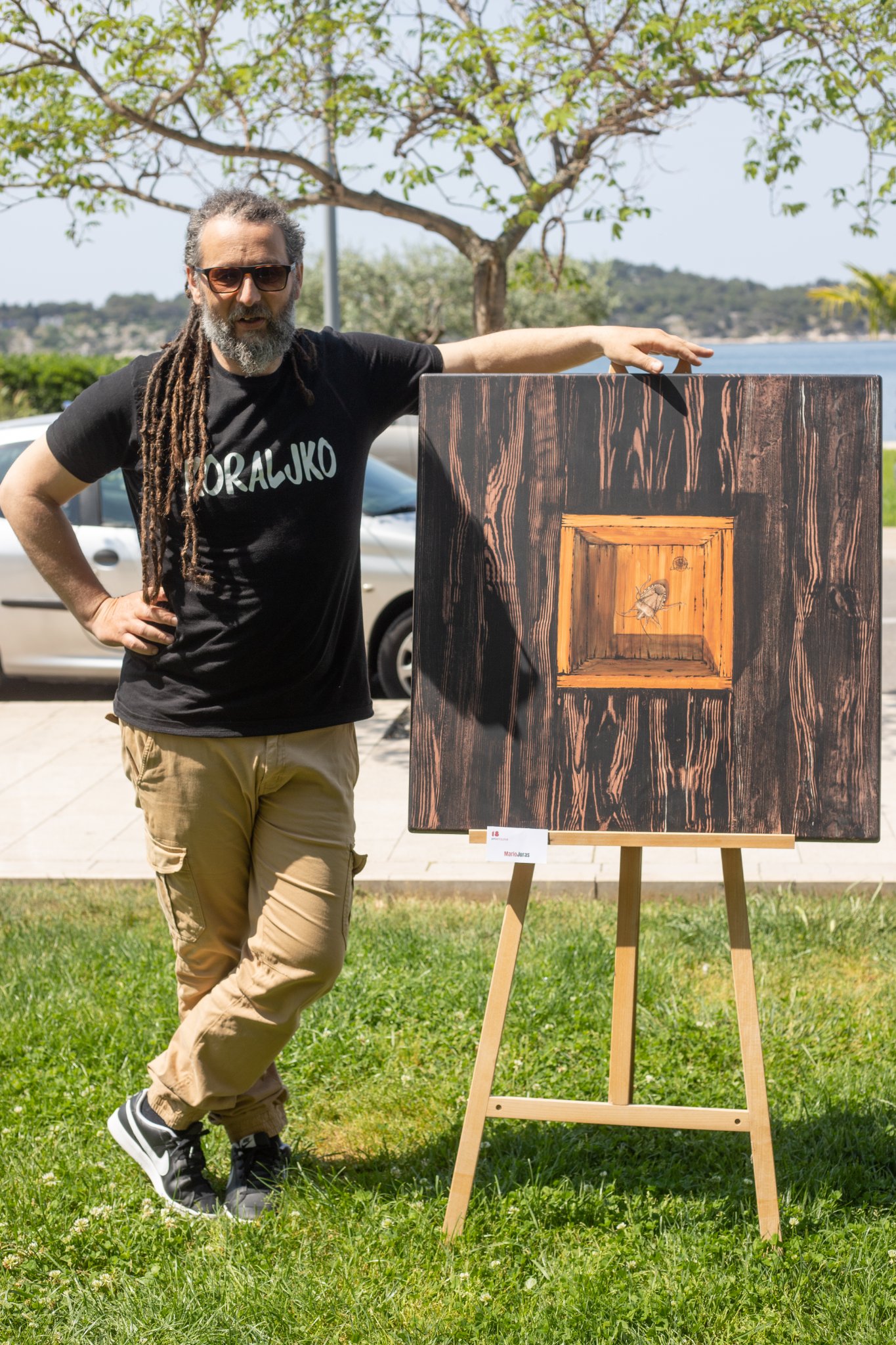 „Za Azimut bih napravio sve, što god da mi kažu. Velika mi je čast što sam autor jednog stola i što sam uopće u ovoj ekipi iako nisam primarno crtač no to mi je bio poticaj da se još više potrudim. Na prvu možda nije jasno kakve veze smrdljivi Martin ima s mirom, ali na drugu itekako ima. Suprotno od mira nije rat nego nemir, a nemir je puno globalnija riječ od rata i to je mir kojem ja težim. Miru koji smrdljivi Martin ima na livadi punoj cvijeća, u neznanju o ratovima, koroni, abortusima… U slučaju kakvog napada nekog većeg iz hranidbenog lanca, samo ispustim smrad da neprijatelj ode“, slikovito je svoju plohu koju krasi kukac opisao umjetnik i pitarolog, obrtnik Mario Juras, poznatiji kao Lulas.