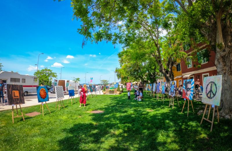 Osamnaest umjetnika različitih likovnih izričaja, slikari, grafičari, grafiteri, fotografi, profesionalni likovni umjetnici i amateri, hobisti, zaljubljenici u lijepe linije, boje, obrise... Autori s porukom o miru u svijetu, o 'mojih pet minuta mira' i o miru u svima nama doći će u kontakt s tisućama osobama, sa Šibenčanima i gostima grada, a njihova će umjetnost obići svijet kao lijepa šibenska priča i fotografija na društvenim mrežama, kao kakav ambasador najljepše kulturne priče posljednjih godina.