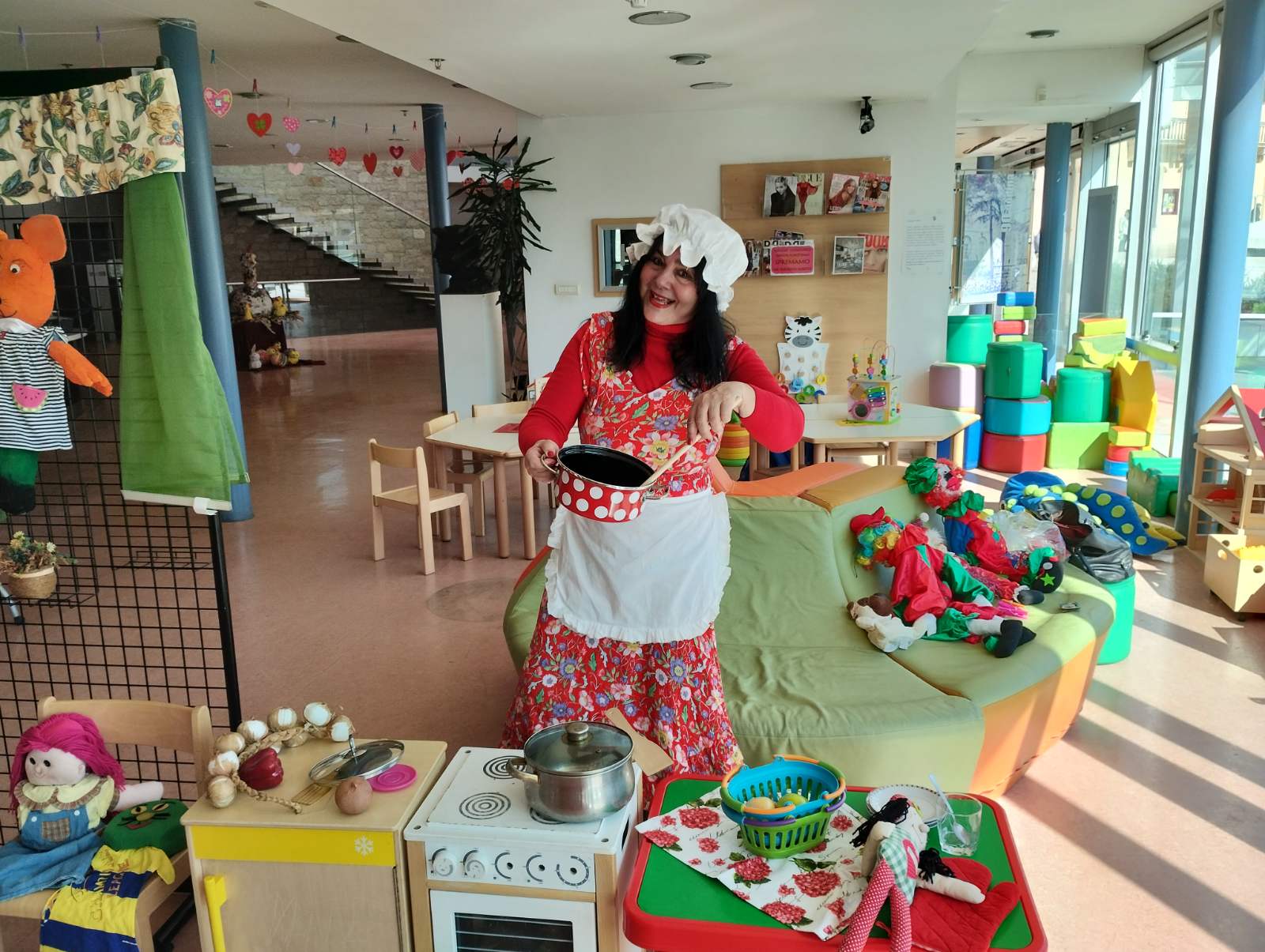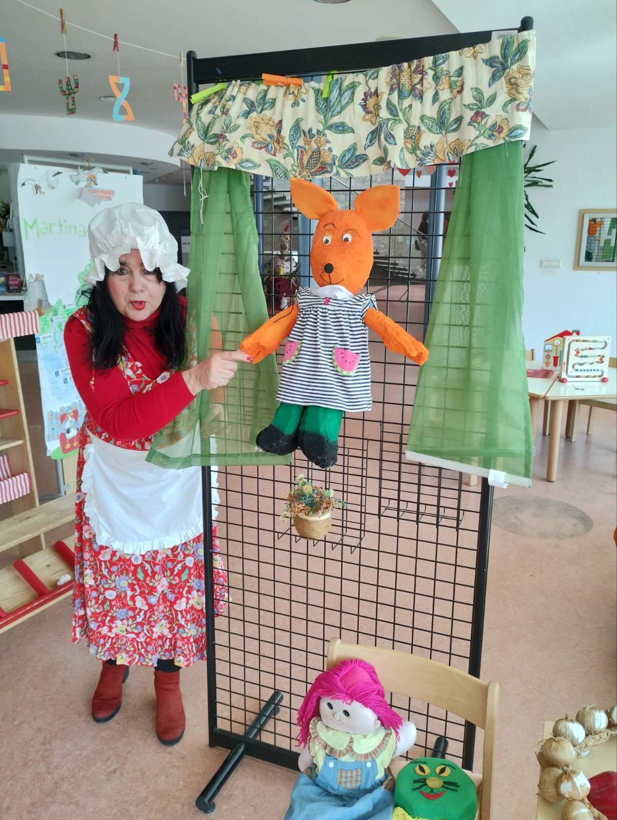 Jučer, na Svjetski dan lutkarstva gostovala je u Gradskoj knjižnici Jurja Šižgorića u Šibeniku. Za vrtićku djecu je izvela svoju drugu lutkarsku predstavu i to o baki Ani i dva zaljubljena lonca. Ona je glumila i baku Anu i sve ostale likove u predstavi – od dva lonca od kojih jedan potječe iz Pariza, a baka Ana ga je dobila na poklon za svoj rođendan, do vjeverica koje su osjetile miris kolača koje je baka pekla za rođendan svoje unučice pa su poželje imati takvu proslavu i za rođendan svoje dvoje male vjeverice blizanke Ruku i Taku. Priča govori o ljubavi, a ima i ekološku poruku, a i u njoj je postigla interakciju s djecom.