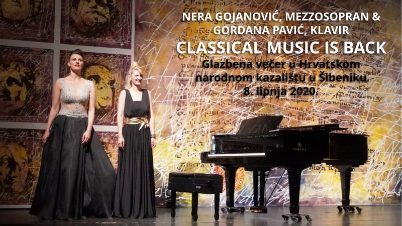 Šibenske glazbene dive, mezzosporanistica Nera Gojanović i pijanistica Gordana Pavić, održale su 8. lipnja 2020. godine u HNK u Šibeniku nadahnut, umjetnički dojmljiv koncert "Classical music is back". Bio je to prvi koncert u šibenskom kazalištu nakon zabrane svih manifestacije zbog epidemije koronavirusa. Koncert je trebao biti održan 8. ožujka, ali je morao biti otkazan zbog izbijanja epidemije i bio je jedna od prvih "žrtava" koronakrize.