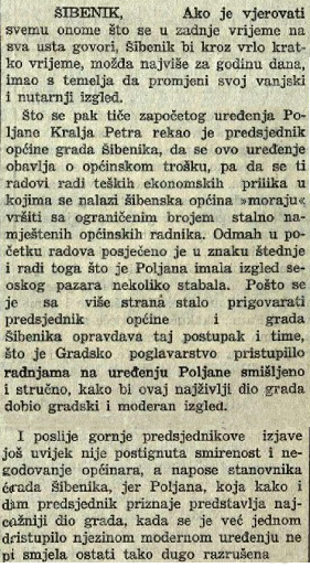 Šibenik je, osim za uređenje Poljane tražio kredit još i za uređenje puta od željezničke postaje do suda, Splitskog puta iza nove carinarnice te za uređenje obale, a od uređenja puta kroz Plišac se odustalo.