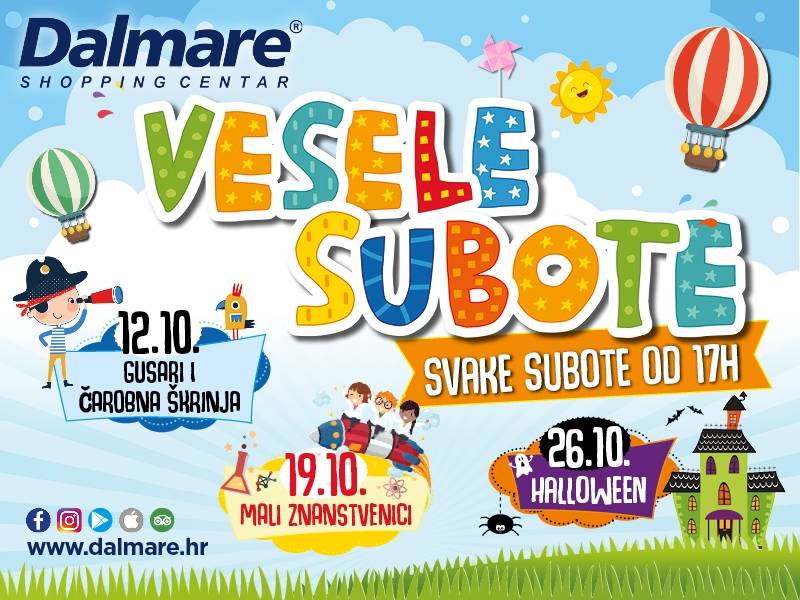 Dalmare centrom, 19. listopada na jedan dan zavladat će Mali znanstvenici i on će poprimiti izgled znanstvenog labosa. Bit će to prilika da oni najmlađi nauče o fosilima, mineralima, da iste pokušaju izraditi od gline te sudjeluju u znanstvenim kvizovima. Oni najodvažniji mogu se okušati u turniru školskog memoara. Kao i na kraju svake vesele subote, očekuje nas ”party time” i to znanstveno – fantastična zabava uz super nagrade za sve male znanstvenike.