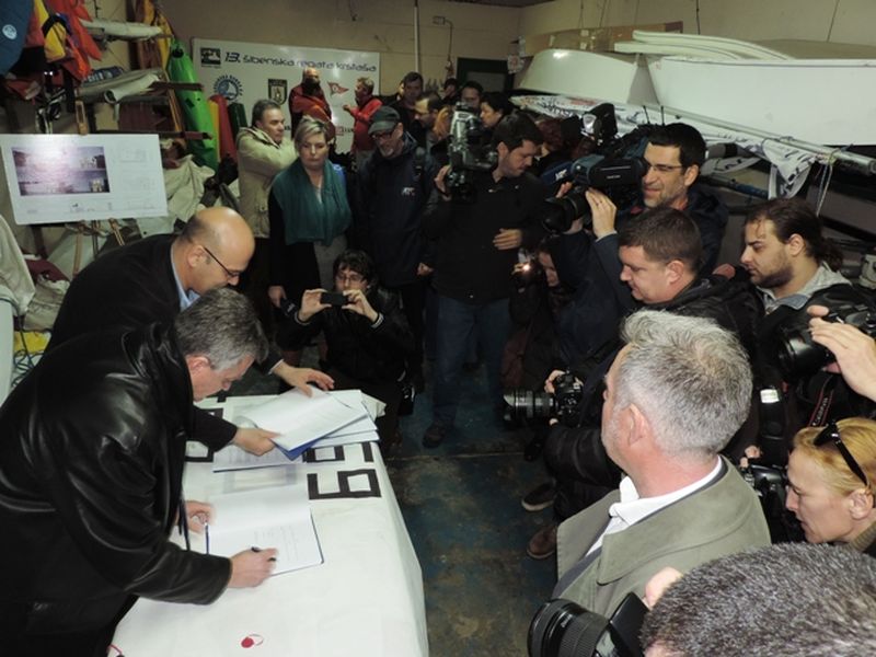 Marin Paić, predsjednik jedriličarskog kluba „Val“ i gradonačelnik Šibenika Željko Burić, potpisali su danas Ugovor o međusobnim pravima i obvezama o upravljanjem javnom sportskom građevinom, zahvaljujući kojem će jedriličarski klub „Val“ konačno moći izgraditi objekt primjeren svojim potrebama i sportskoj reputaciji.