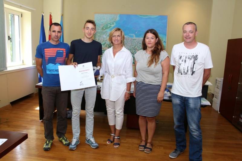 Gradonačelnica Vodica Branka Juričev Martinčev primila je uspješnog mladog biciklista Roka Fržopa, člana BBK Orlov krug.