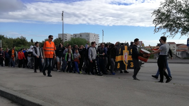 Funcuti su organizirali navijački mimohod po glavnoj šibenskoj prometnici Stjepana Radića na kojoj je bio zaustavljen promet.
