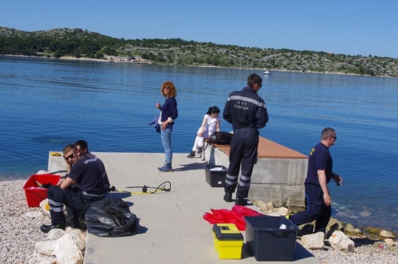 Ronilački tim Javne vatrogasne postrojbe grada Šibenika i DVD-a Šibenik, Športsko-ribolovno društvo „Mali porat“ iz Vodica i ronilac volonter Vice Kulušić jutros su počeli s akcijom čišćenje podmorja plaže Banj.