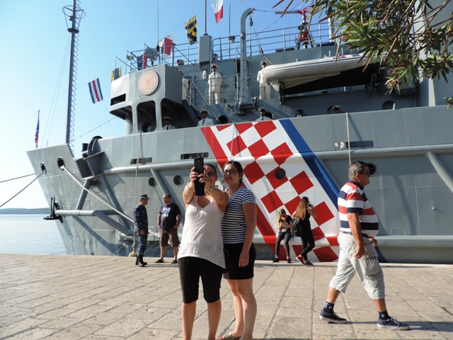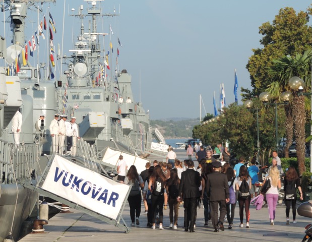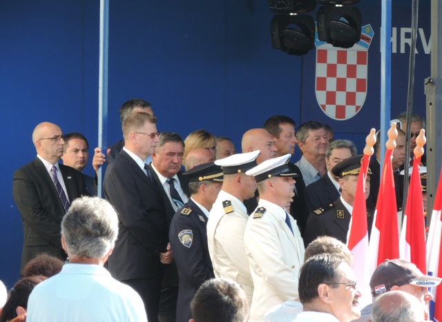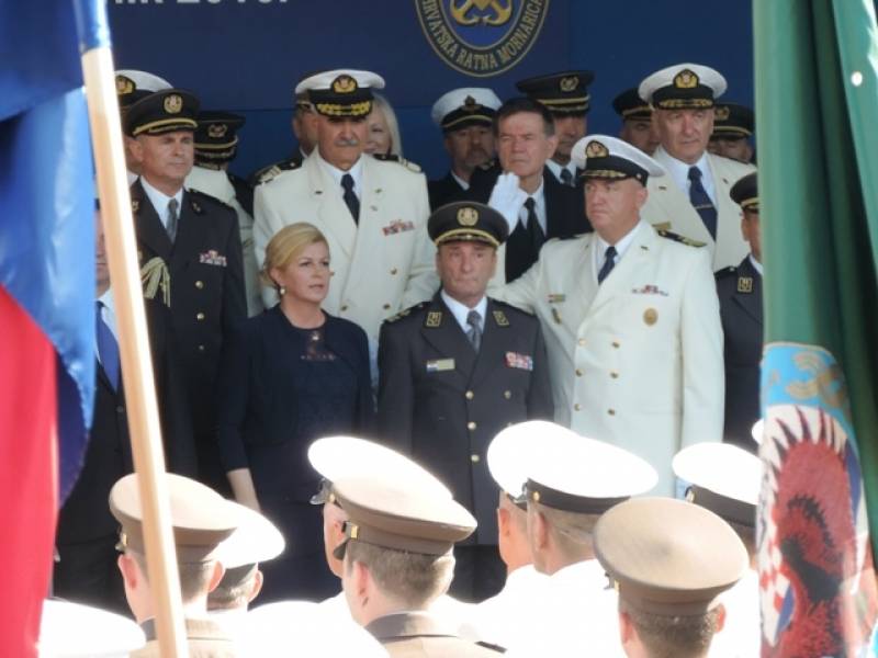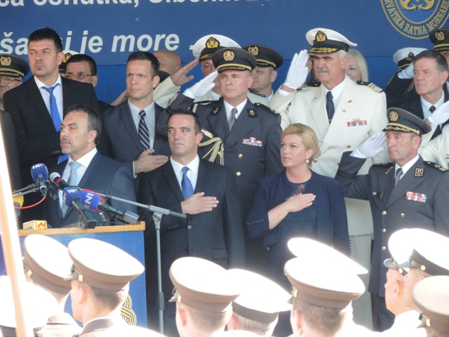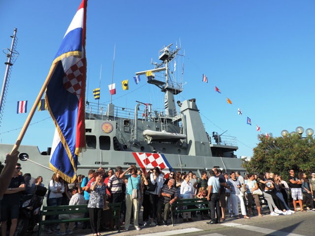 S broda Učka u šibenskoj luci u more predsjednica je bacila vijenac u spomen na sve pripadnike HRM –a koji su poginuli u Domovinskom ratu. Prije toga je održan Mimohod članova braniteljskih udruga proizašlih iz Domovinskog rata i učenika šibenski osnovnih i srednjih škola od Spomen obilježja na Baldekinu do šibenske rive gdje je nastavljeno druženje na sajmu udruga branitelja i uz porcije telećeg rižota koji su pripremali članovi Sekcije ugostitelja Udruženja obrtnika grada Šibenika.