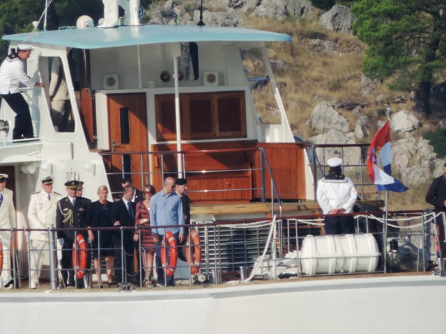 Grabar Kitarović dočekali su Goran Pauk, župan šibensko - kninski i Željko Burić, gradonačelnik Šibenika, grada heroja koji je višednevnom bitkom poznatijom kao Rujanski rat ostvario prvu i značajnu pobjedu u Domovinskom ratu.
