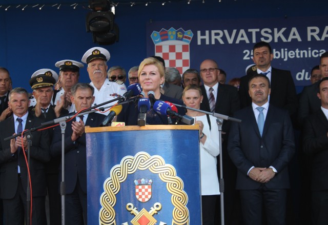 Predsjednica RH Kolinda Grabar-Kitarović u svom je obraćanju čestitala 25. obljetnicu ustrojavanja Hrvatske ratne mornarice.