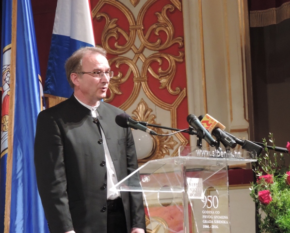 Nadahnuto i dojmljivo na današnjoj su sjednici Gradskog vijeća govorila dva biskupa, novi šibenski biskup Tomislav Rogić i biskup u miru Ante Ivas. Biskup Rogić je istaknuo kako je kada nešto traje 950 godina to samo po sebi vrijednost koja je bila dobro čuvana i voljena.