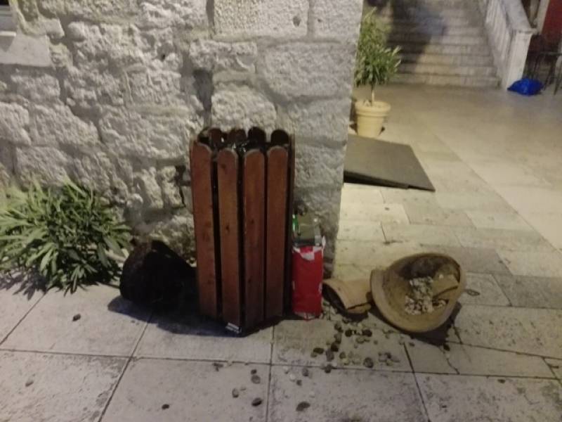 Jako jugo koje je puhalo još tijekom noći na području grada Šibenika uzrokovalo je niz problema, a jedno od njih svakako su 'povaljani' pitari s biljkama, bačeni suncobrani kao i razbacano smeće po ulicama što se moglo vidjeti sredinom noći.