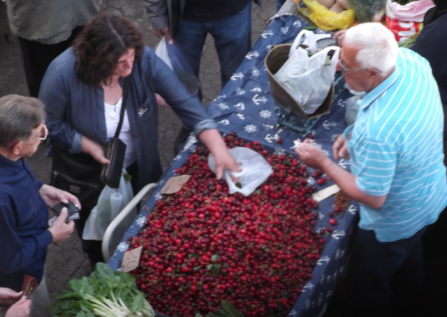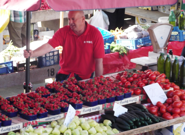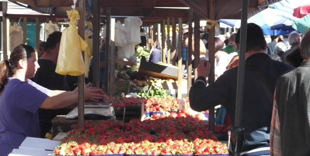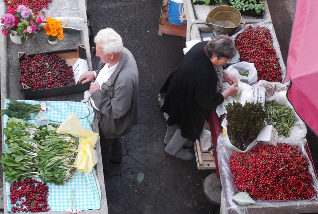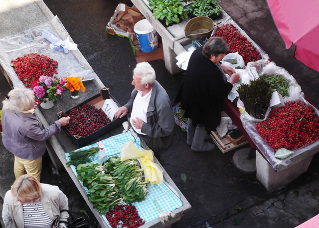 Da se lijepa, gotovo idilična slika proljeća na šibenskoj pijaci ne pomuti pobrinuli su se prodavači koji barem za trešnje nisu tražili previše – od 12 do 20 kuna za kilogram.