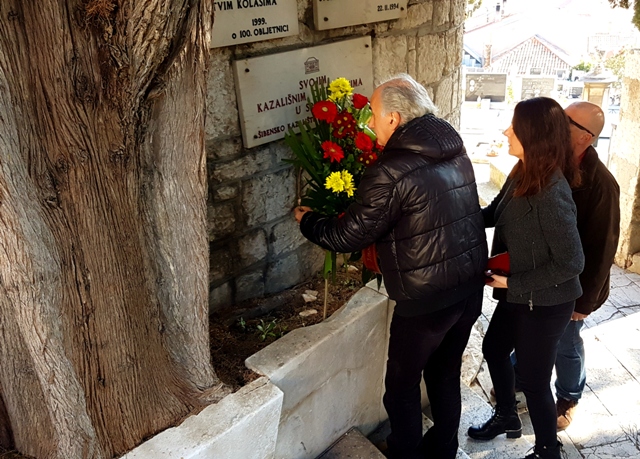 Pod spomen obilježje svim preminulim šibenskim kazališnim djelatnicima na groblju sv. Ane, danas je delegacija Hrvatskog narodnog kazališta u Šibeniku položila vijenac i odala im počast minutom šutnje.