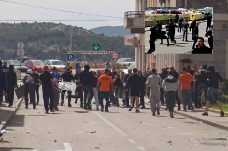 U Šibeniku je danas oko 13 sati izbila masovna tučnjava nakon što su navijači iz Zadra napravili nered na šibenskim ulicama, napadali i tukli prolaznike.