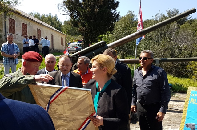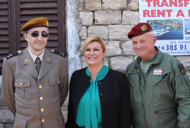 Predsjednica RH Kolinda Grabar Kitarović danas je za posjeta Žirju saslušala mještane koji su joj se izjadali zbog problema sa strujom, vodom i brodskim linijama, a na kraju je i pjevala s klapom Žirje i mještanima, u vedroj i opuštenoj atmosferi. Pridružili su joj se i župan Goran Pauk i gradonačelnik Šibenika Željko Burić u pjesmi " Hrvatska se Šibenikom dičim". Posjetila je bitnicu na Žirju i razgovarala s bivšim zapovjednikom Miroslavom Alićem i Dragutinom Mrvicom, jednim od topnika. Na poklon je od njih dobila crvenu ružu. Izvan protokola obišla je je i vojarnu u uvali Koromašnoj koja je dodijeljena udruzi „Ruža Hrvatska“ u kojoj se nalaze dva legendarna, obnovljena topa koji su bili vrlo važni i ubrani Šibenika.