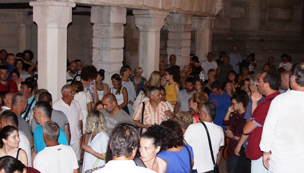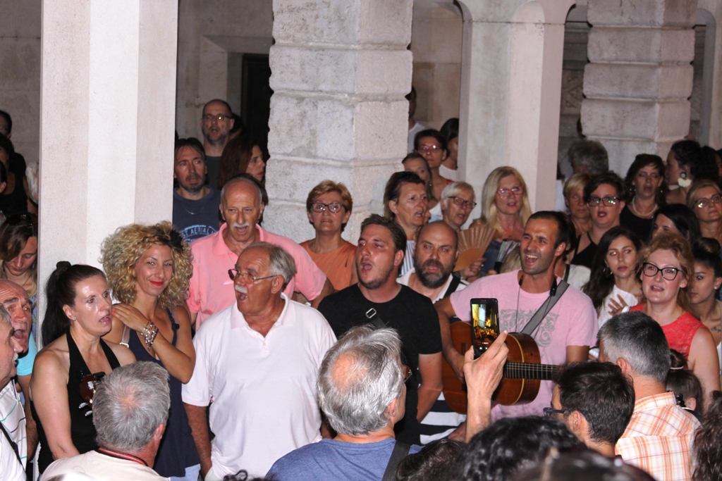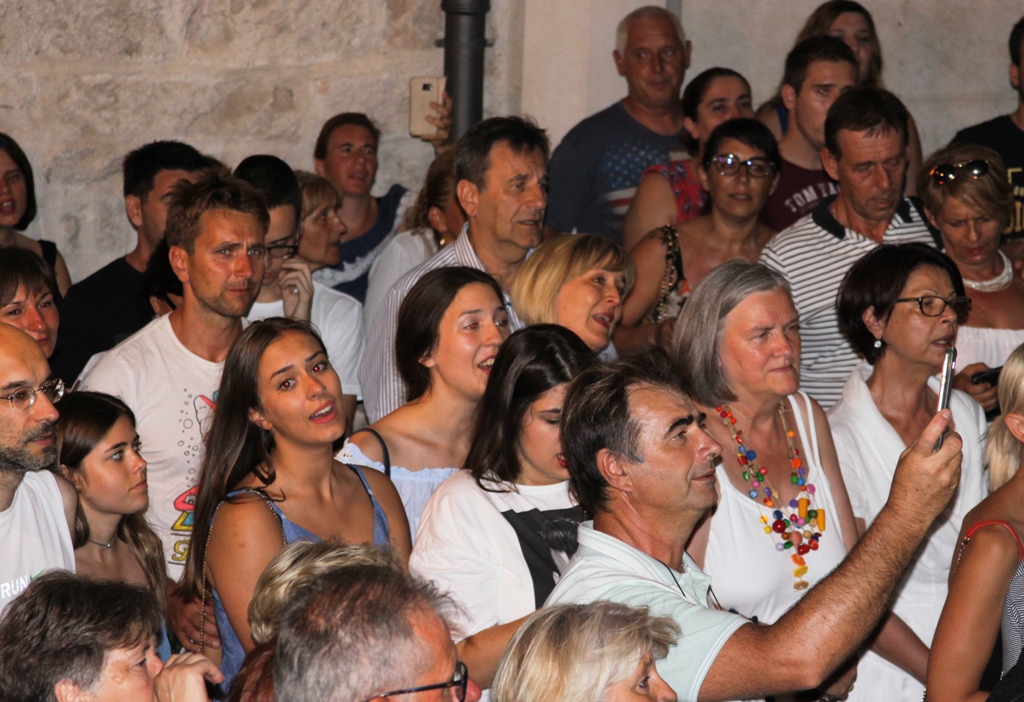 Šibenik se ipak pjesmom na otvorenom i spontanim okupljanjem oprostio od velikog hrvatskog pjevača i glazbenika Olivera Dragojevića. Večeras oko 21 sat, u vrijeme kada su njegov lijes Splićani ispraćali na posljednju plovidbu prema Veloj Luci u kojoj će biti pokopan, brojni Šibenčani natiskali su se u prostoru između Muzeja i katedrale i pjevali zajedno sa šibenskim glazbenicima, uglavnom klapskim pjevačima , među kojima je bio i rade Koštan, najpoznatije Oliverove pjesme. Možda to nije bio najveći skup kojim je odana počast tom velikom pjevaču uz čije su pjesme odrastale brojne generacije, ali je sigurno održan u najakustičnijem prostoru koji su ispunili glasovi Šibenčanki i Šibenčana, poznatih po svojoj glazbenosti i privrženosti dalmatinskoj i mediteranskoj pjesmi. Počeli su s Velom Lukom, nastavili s „Da mi dođeš ti“, S ponistre se vidi Šolta, „Moj lipi anđele“ i tako redom...