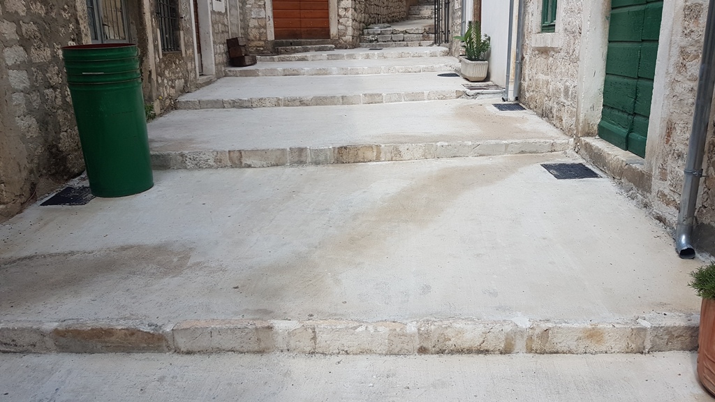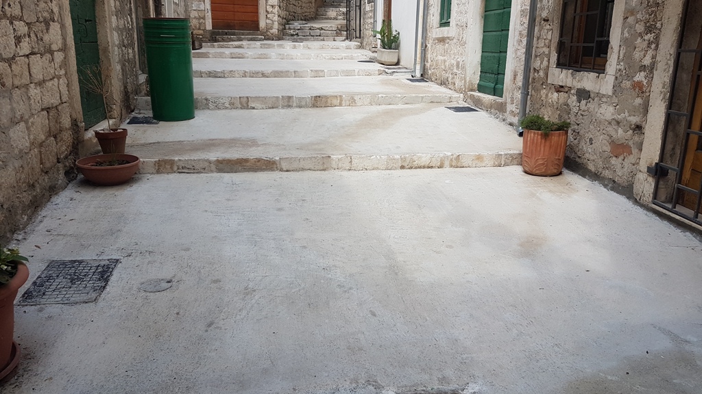 Devastacija velikih razmjera dogodila se u srcu starog Šibenika, u ulici Horacija Fortezze veći dio koje je betoniran, a stare kamene ploče su uklonjene. To tako stoji već mjesecima i nitko nije reagirao. Kamene ploče ostale su još na početku i na kraju te uličice koja vodi od ulice Fausta Vrančića prema Gorici.