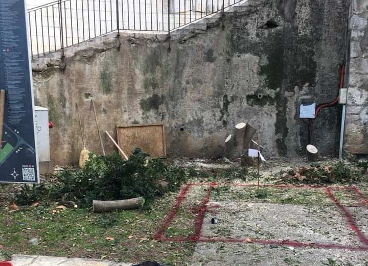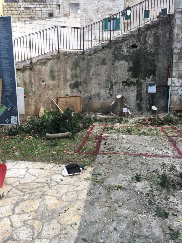 Radnici "Zelenog grada" jutros su posjekli, po nalogu gradske uprave, stabla odnosno velike zimzelene grmove Pitosporuma koji su se nalazili uz stepenice koje vode prema šibenskoj katedrali i svojim su mirisom i izgledom oplemenjivali taj prostor. Neslužbeno doznajemo da je to napravljeno kako bi se na tom mjestu postavio neki informativni punkt za posjetitelje.