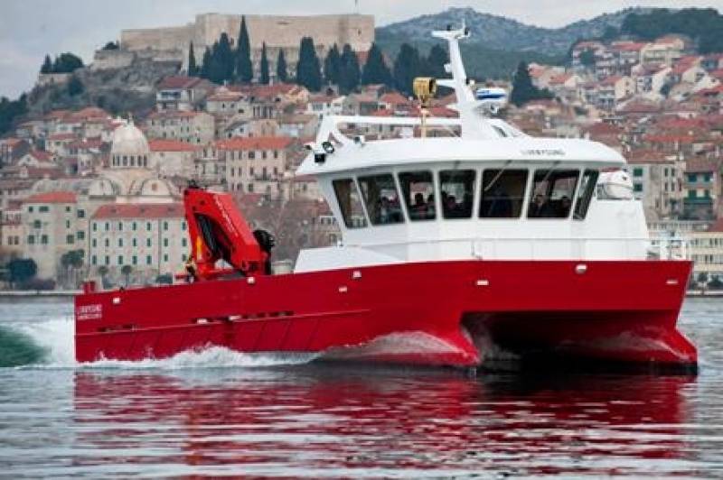 Aluminijski katamarani projektirani za rad u marikulturi, duge 13,75 metara i široke osam metara, bit će pokretani električnom propulzijom, a struja će pokretati i svu opremu na njima uključujući dizalice i vitla.