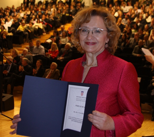 Docentici Ireni Bralić uručena je danas, na svečanosti proslave 22. godišnjice osnivanja Medicinskog fakulteta u Splitu, nagrada za najbolje sveučilišno štivu na tom fakultetu u 2018. godini. To je priznanje posebno povjerenstvo dodijelilo njezinom udžbeniku "Tranzicijska medicina", u kojem su objavljeni radovi 29 autor, a predstavljeni su na njezinom pedijatrijskom Tečaju 1. kategorije koji je lani, četvrtu godinu za redom, organizirala u Šibeniku. Na toj je nagradi docentici Bralić, nakon službenog dijela svečanosti, posebno čestitao i Dragan Ljutić, rođeni Šibenčanin koji je rektor Sveučilišta u Splitu, najboljeg sveučilišta u ovom dijelu Europe.