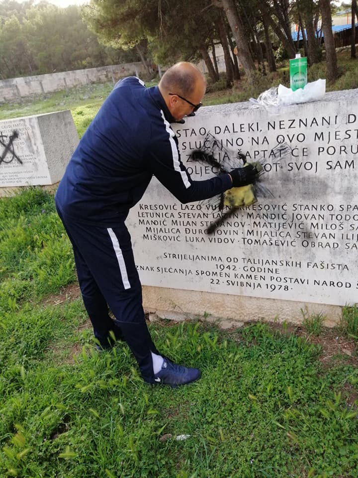 SDP -ovac Šupe djelomično očistio ustaške grafite u Spomen parku na Šubićevcu,kad nije "Zeleni grad"