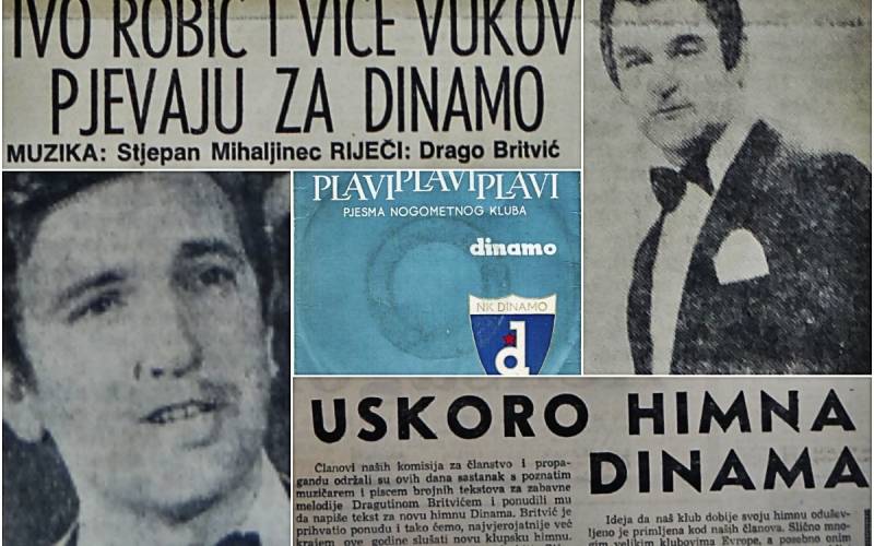 Prije točno 50 godina, u listopadu 1969. godine Ivo Robić i Vice Vukov, dvije pjevačke legende, u duetu su pjevali prvu himnu nogometnog kluba "Dinamo" iz Zagreba. Pjesma "Plavi, Plavi, Plavi", aktualna je upravo danas 22. listopada 2019. godine kada "Dinamo" igra važnu utakmicu Lige prvaka protiv jakog ukrajinskog Shakhta.