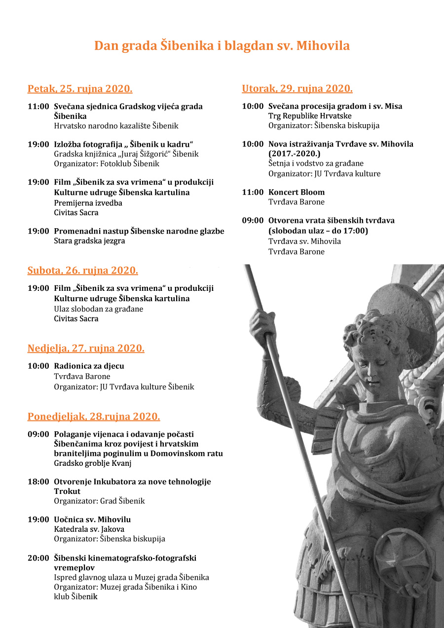 Na blagdan sv. Mihovila, u utorak 29. rujna u 10 sati počinje svečana procesija gradom i misa ispred katedrale. Za isto vrijeme zakazana je i šetnja uz vodstvo za građane na temu "Nova istraživanja tvrđave sv. Mihovila" o organizaciji JU Tvrđava kulture.Na tvrđavi Barone u 11 sati koncert će održati domaći bend Bloom, a cijeli dan će građanima biti besplatan ulazak na tvrđave sv. Mihovil i Barone.