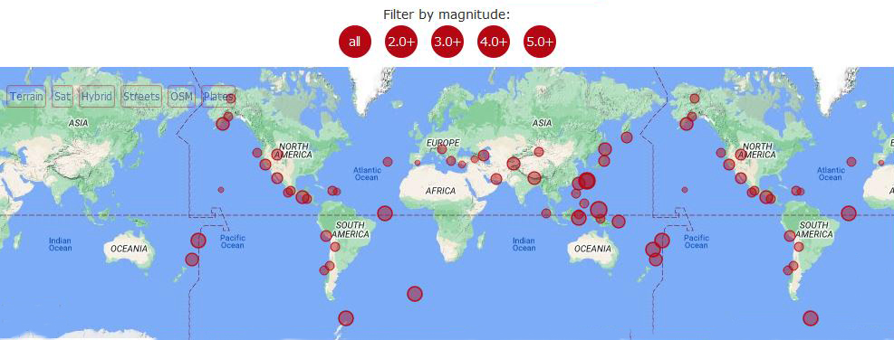 Tlo se trese i širom svijeta. Seizmološke službe registrirale su 713 potresa u posljednja 24 sata od kojih je 8 imalo magnitudu veću od 5 prema Richteru.