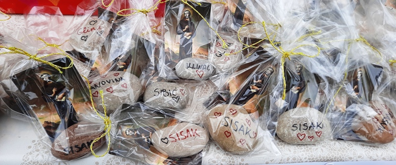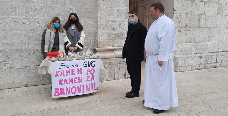 Franjevačka mladež župe Gospe van grada pomaže stradalom pučanstvu Banovine na osobito lijep način. Na svojim radionicama izradili su suvenire od oblutaka koje su sami prikupili. Na oblucima su ispisali stradale gradove i sela n Banovini, a uz njih stavili sliku i molitvu sv. Nikole Tavelića. Svoju je dobrotvornu akciju franjevačka mladež nazvala "Kamen po kamen za Banovinu". Suvenire daruju svim ljudima dobra srca koji suosjećaju sa stradalnicima i voljni su dati dobrovoljni prilog koji će pomoći unesrećenima i pridonijeti obnovi Banovine.